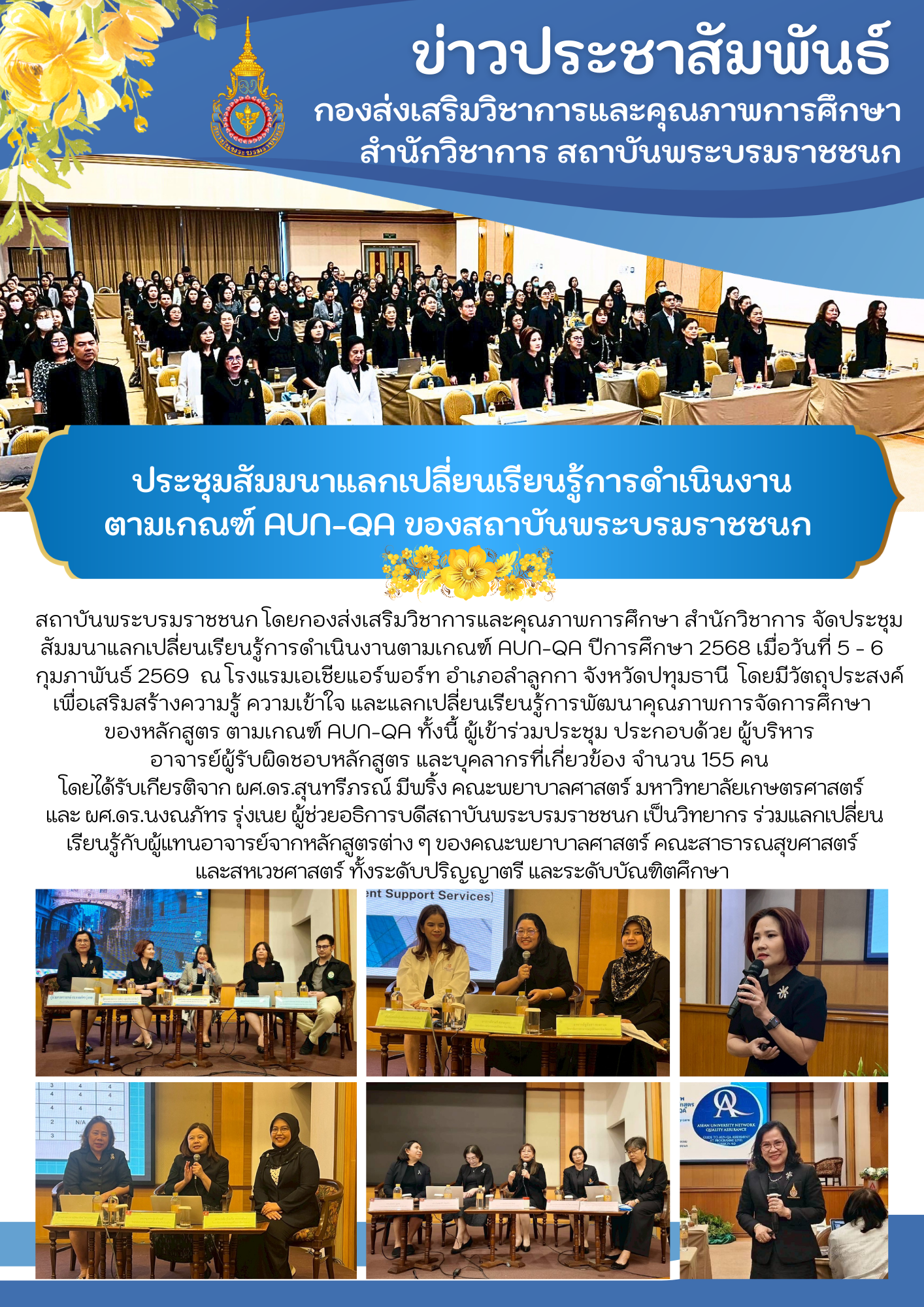 ประชุมสัมมนาแลกเปลี่ยนเรียนรู้การดำเนินงานตามเกณฑ์ AUN-QA ของสถาบันพระบรมราชชนก ปีการศึกษา ๒๕๖๘